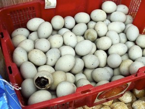 Pidan, of ‘preserved eggs’ of 1000 jaren eieren. zwart van binnen, doorzichtig van buiten