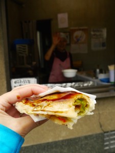 Variatie op de okonomiyaki (Japanse pannenkoek)